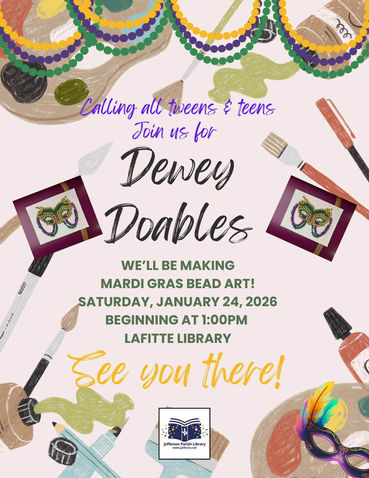 Join us for engaging programming that is designed for all ages and abilities. Parental supervision required. Please call the Children’s Desk at (504) 364-3664 ahead for the latest information.