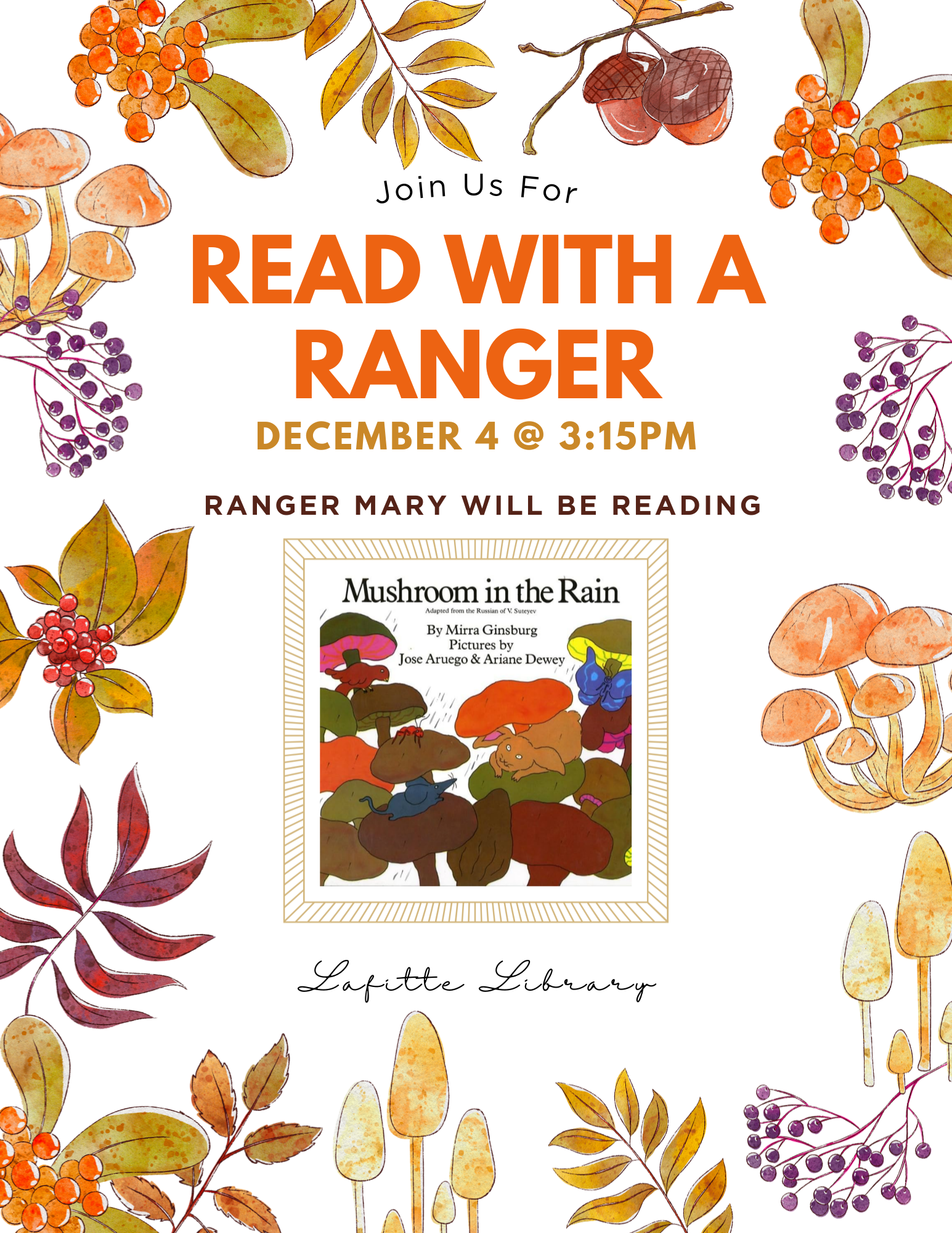 This event is in the "Ages 0-5" group This event is in the "Ages 6-11" group Dec 4 2025 Thu Read with a Ranger 3:15pm–4:15pm Ages 0-5, Ages 6-11 Lafitte Library This event is in the "Ages 0-5" group This event is in the "Ages 6-11" group Dec 4 2025 Thu Read with a Ranger 3:15pm–4:15pm Lafitte Library Library: Lafitte Library Room: Children's Area Age Group: Ages 0-5, Ages 6-11 Program Type: Arts & Crafts, Storytime Event Details: